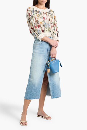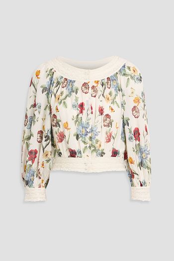 Cropped lace-trimmed floral-print crepe top