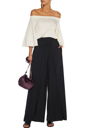 Wrap-effect crepe wide-leg pants