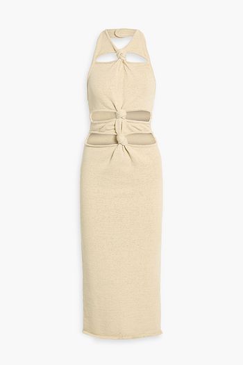 Alaina knotted cutout cotton-blend halterneck midi dress