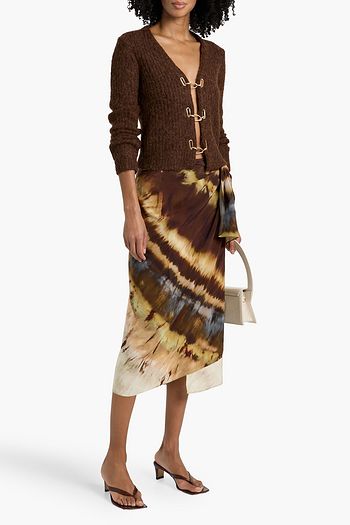 Kumi cutout tie-dyed stretch-mesh midi dress