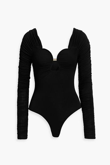 Marley embellished stretch-knit wrap top