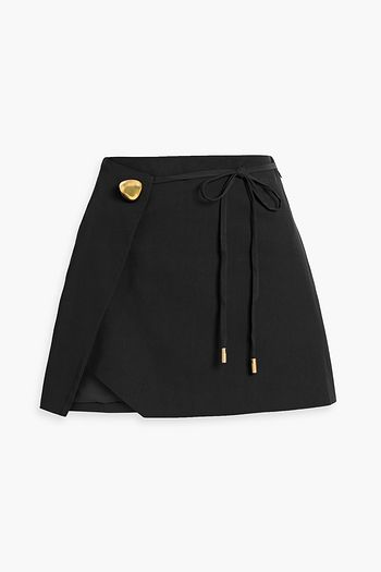 Tov embellished wrap-effect cotton-blend twill mini skirt