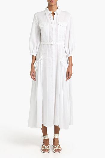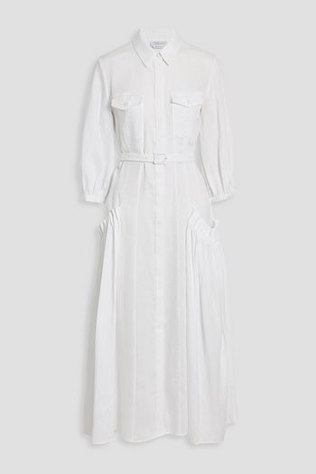 Maxwell shirred linen and silk-blend gauze midi skirt