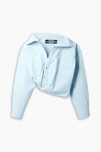 Majean asymmetric cropped cotton-poplin shirt