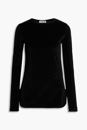 Cotton-blend velour top