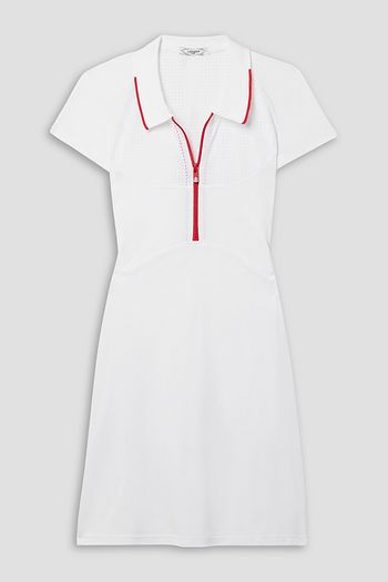 Mesh-paneled piqué mini dress
