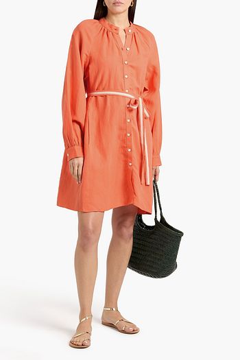 Belted linen and TENCEL™-blend mini dress