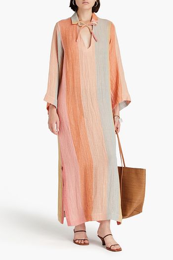 Striped linen-blend gauze kaftan
