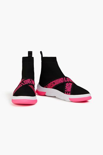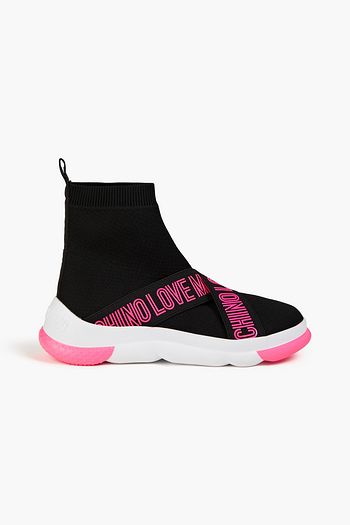 Logo-print textured-knit high-top sneakers