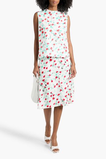 Layered pleated pinstriped wool and cupro-blend satin mini skirt
