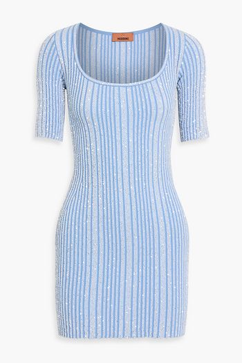 Sequin-embellished ribbed-knit midi dress
