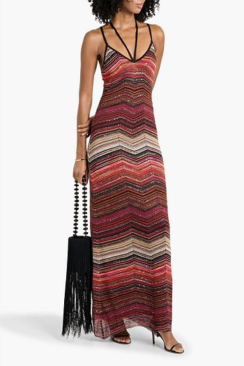 Cutout metallic crochet-knit maxi dress