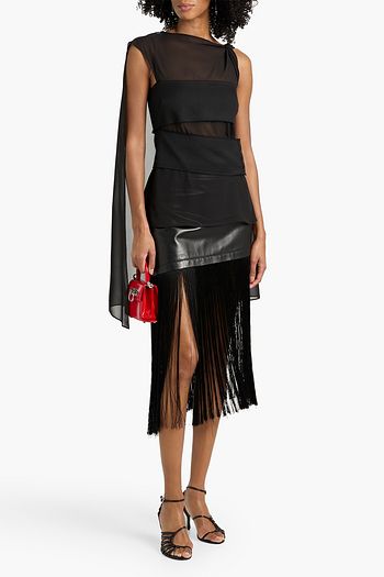 Rosalyn pleated faux leather midi skirt