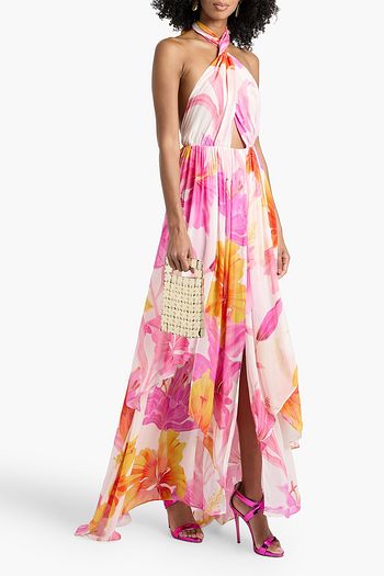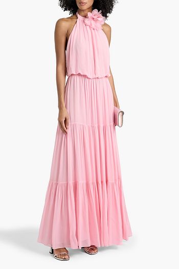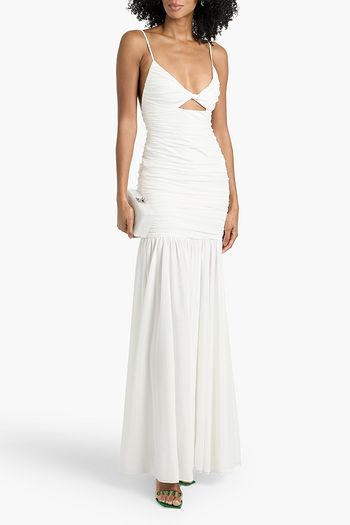 Marlene crystal-embellished draped stretch-silk satin maxi dress