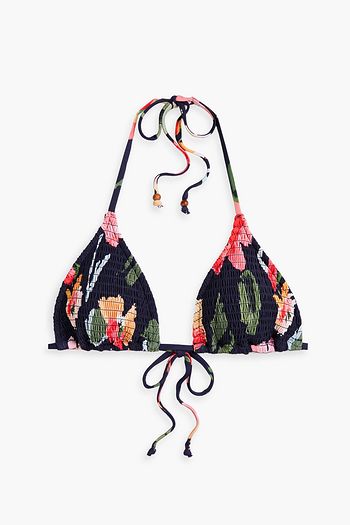 Summer Memoirs shirred printed triangle bikini top