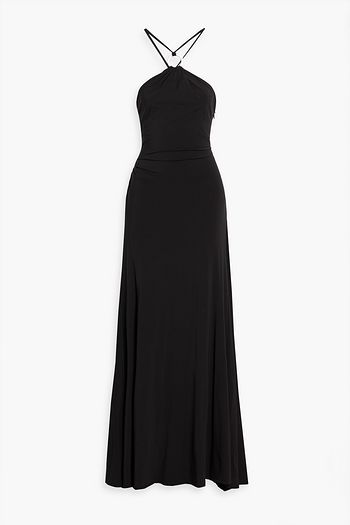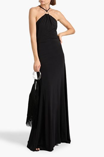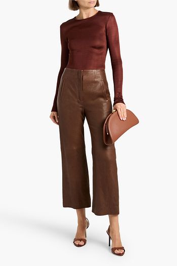 Awa cropped tie-front gathered stretch linen and cotton-blend top