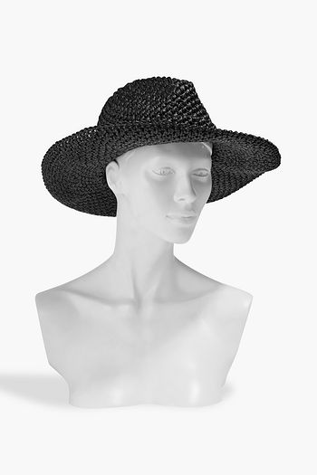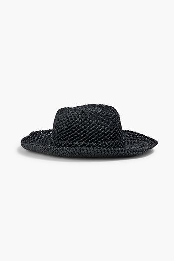 VLOGO leather-trimmed faux straw fedora