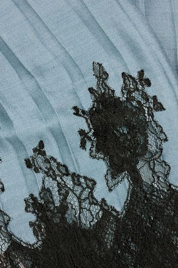 Lace-trimmed plissé wool and silk-blend scarf