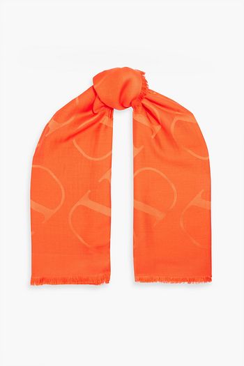 Fringed silk and wool-blend jacquard scarf
