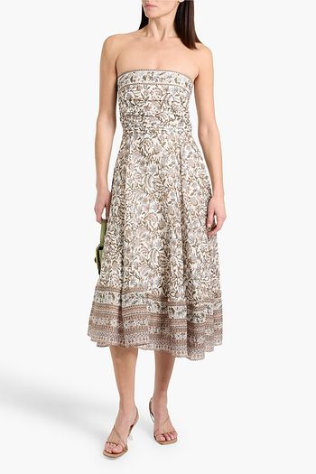 Flora strapless velvet midi dress