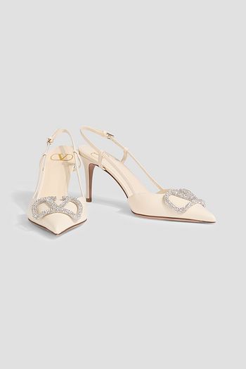 Clarita Bell 85 bow-detailed studded leather slingback pumps