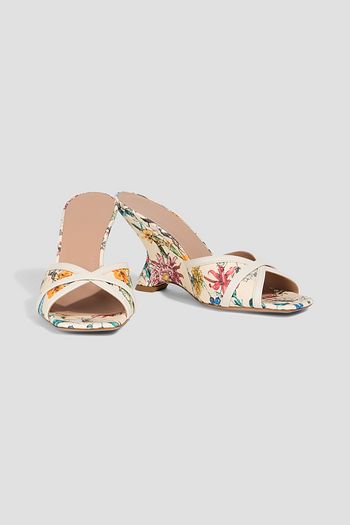 Perla leather-trimmed floral-print faille wedge mules