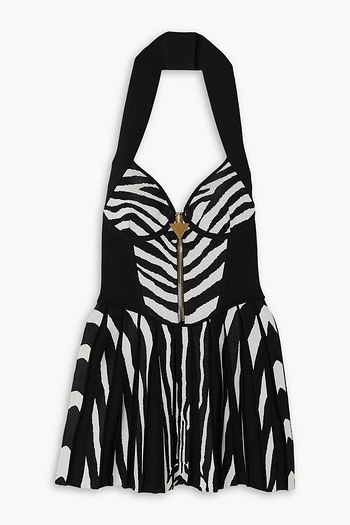 Ruched printed stretch-mesh mini dress