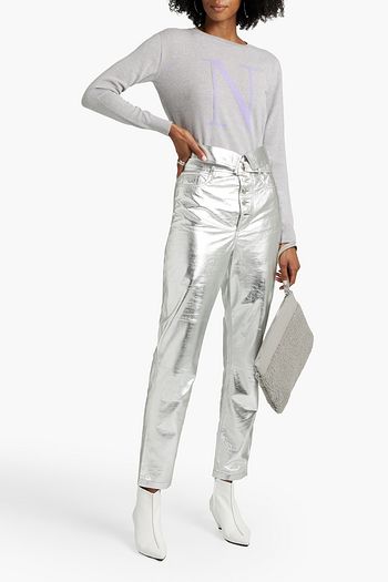 Bead-embellished mélange jacquard-knit sweater