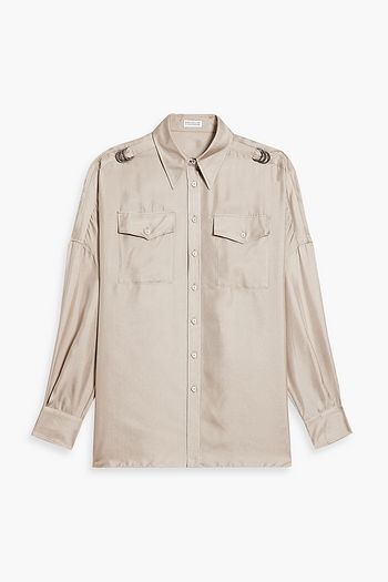 Ring-embellished silk-satin twill shirt