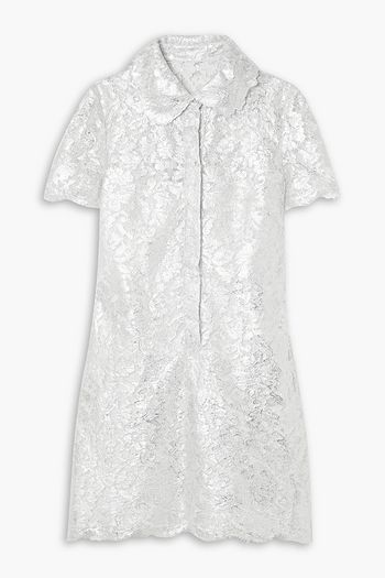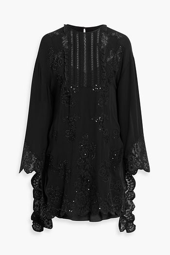Embellished corded lace-paneled wool and silk-blend crepe mini dress