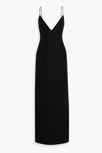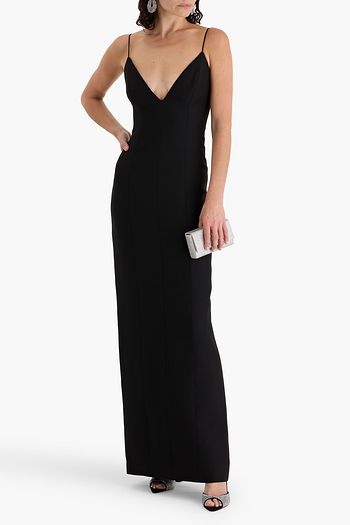 Off-the-shoulder embellished ruched jersey and cady mini dress