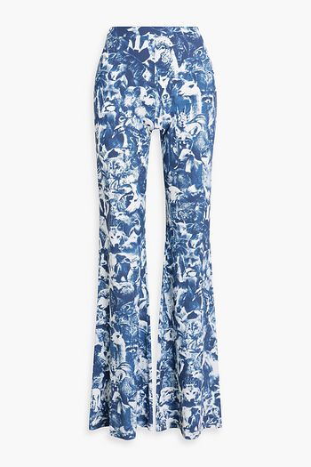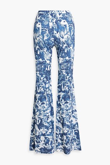 Flocked silk and cotton-blend jacquard wide-leg pants