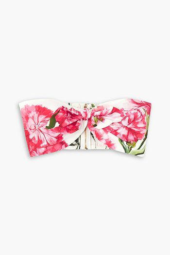Cropped strapless floral-print cotton-poplin bustier top