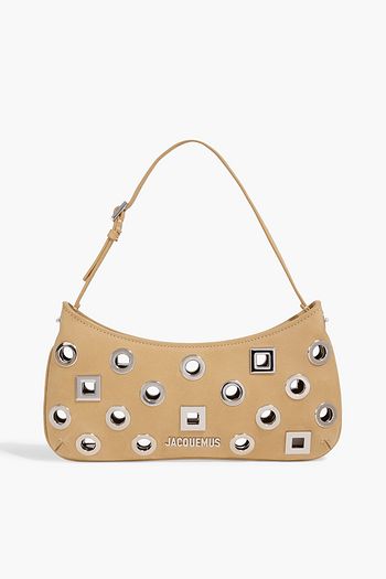 Le Bisou Rond Carré eyelet-embellished suede shoulder bag