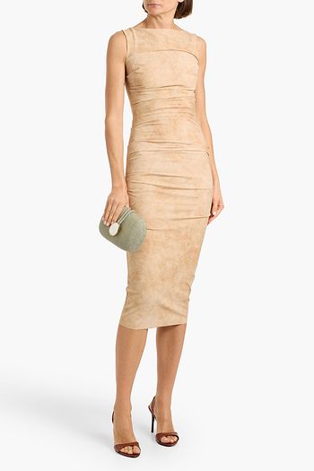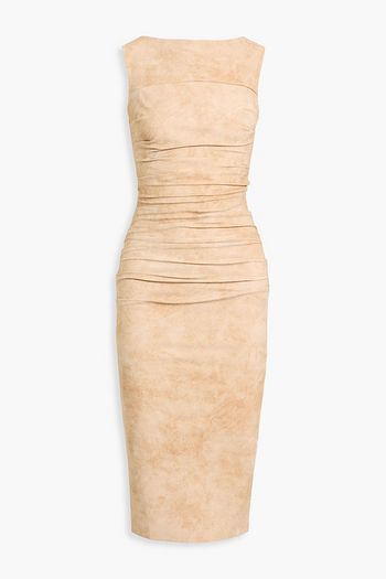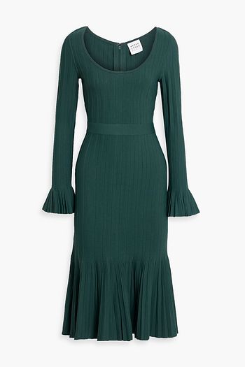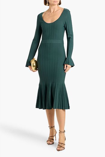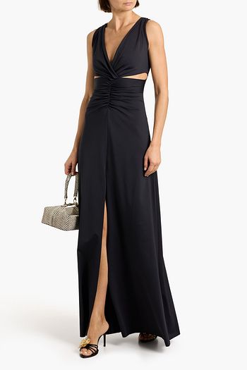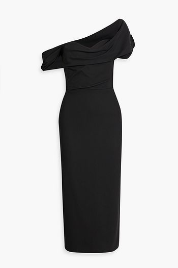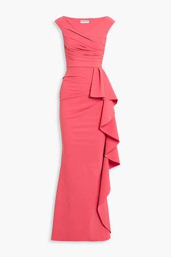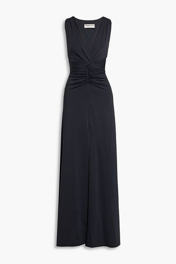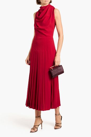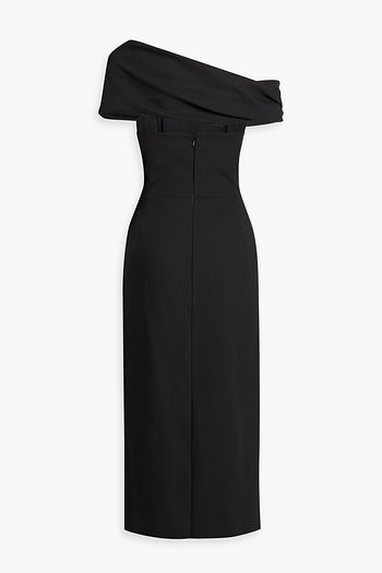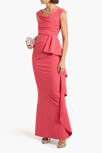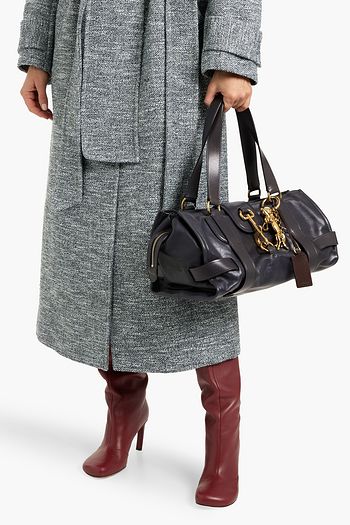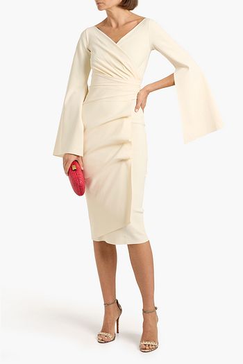 Guipure lace-paneled grain de poudre wool wide-leg pants