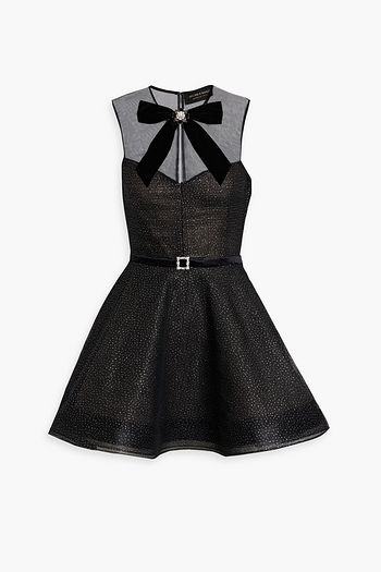 Pleated metallic houndstooth wool-blend tweed mini skirt