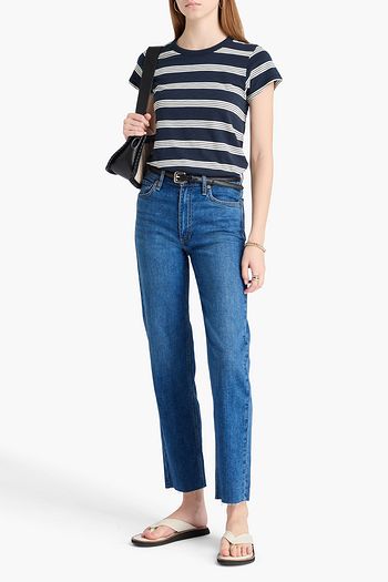 クロップド ミッドライズ ストレートレッグジーンズ ダメージ加工