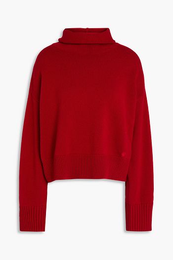 透かし編みニット ウール&カシミヤ混 タートルネックセーター