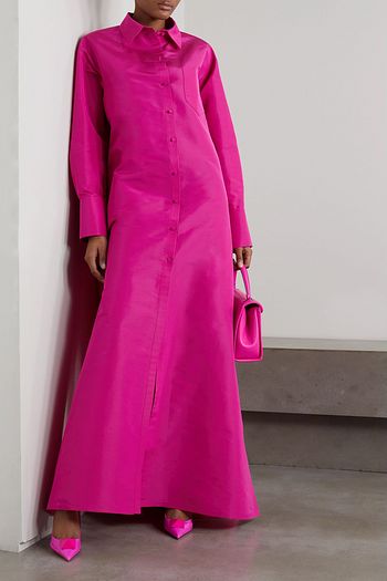ワンショルダー ラッフル付き シルクガザル ロングドレス