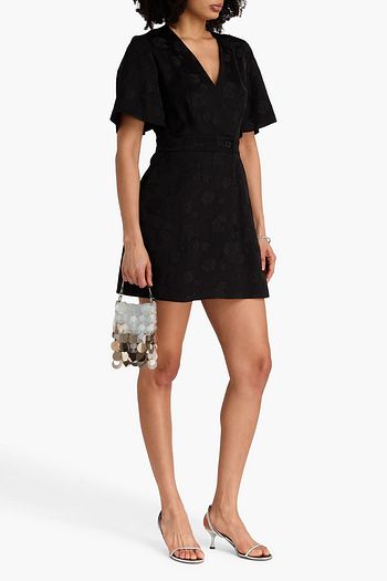 ストレッチメッシュ ミニワンピース ラッフル付き フローラルプリント