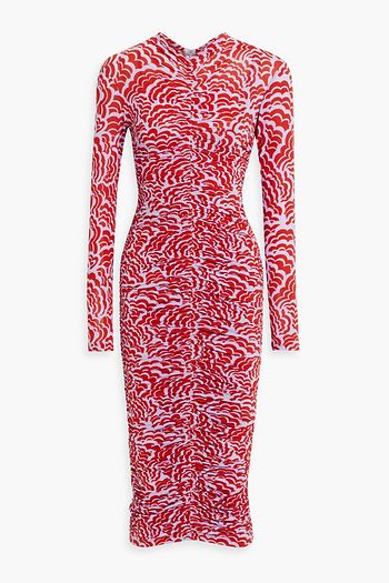 ジャージー ミディワンピース ルーシュ入り カットアウト