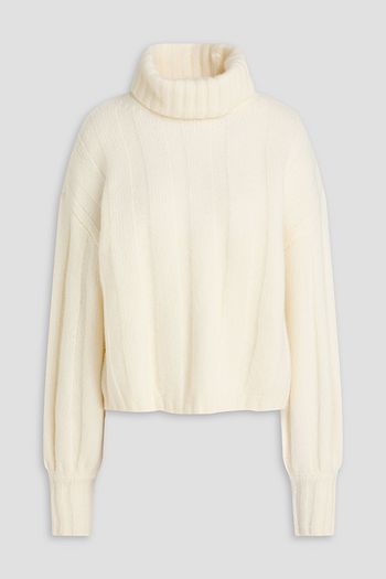 リブ編みメリノウール&シルク混 タートルネックセーター
