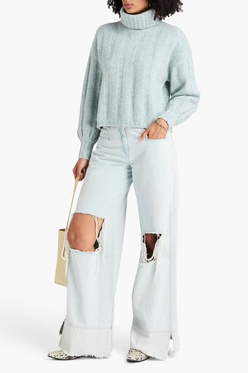 リブ編みコットン混 タートルネックセーター