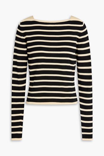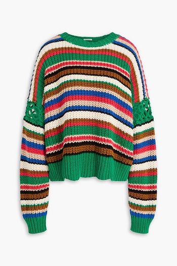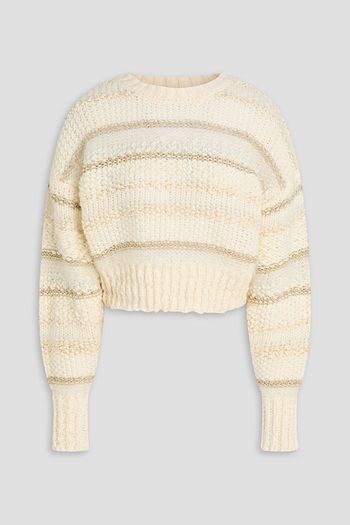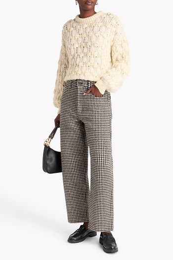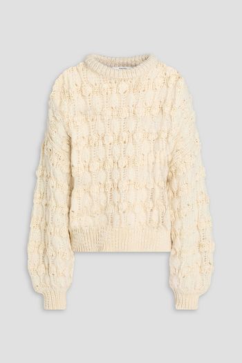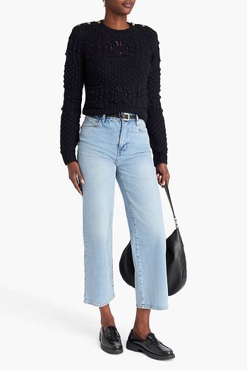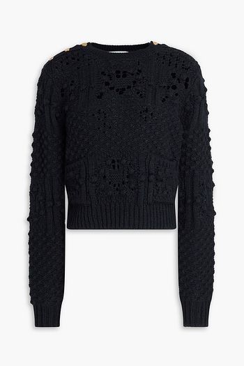 透かし編みニット カシミヤ混 セーター ラッフル&スパンコール付き