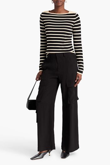 ウール&カシミヤ混 セーター ラッフル付き ポプリントリム