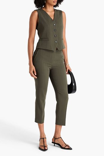リネン混ツイル テーパードパンツ ベルト付き タック入り