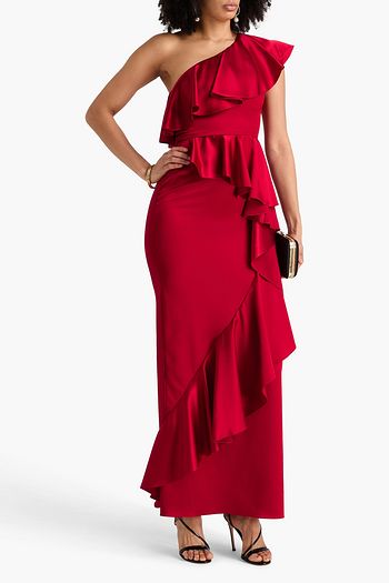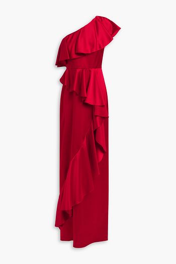 シルクサテン マキシワンピース バイカラー ドレープ入り