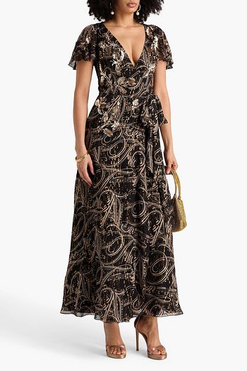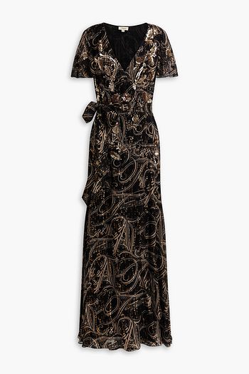 ジャージー マキシワンピース カットアウト スパンコール付き