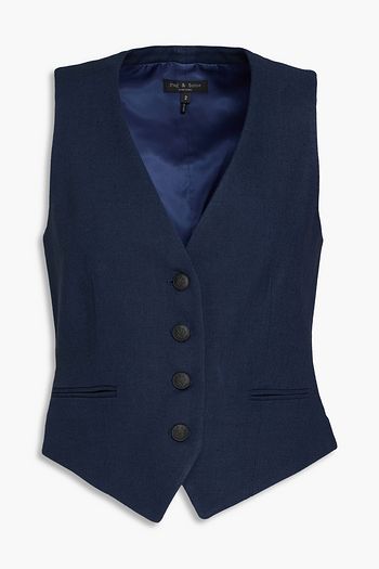 Double-breasted houndstooth cotton and silk-blend tweed blazer