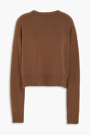 リブ編みウール&カシミヤ混 クロップドカーディガン
